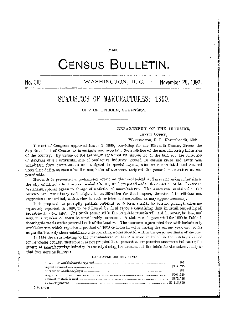 Get the free Bulletin 318. Statistics of Manufactures. Census Bulletins - www2 census