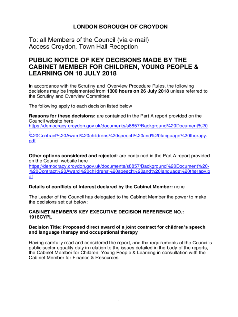 Get the free notice of Key Decisions made by the Cabinet Member for ...