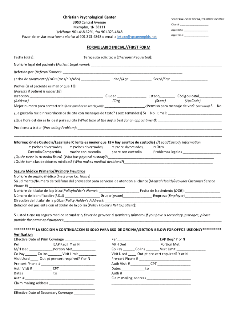 Favor de Elvira ESTA form VA fax all 901.323.4848 o email a Intake@cpcmemphis.netSOLO PARA