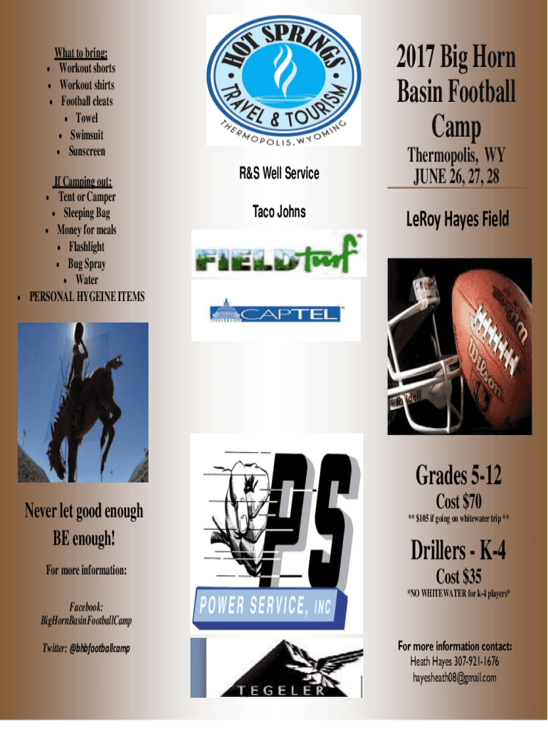 Go to www.facebook.com/bighornbasinfootballcamp/posts