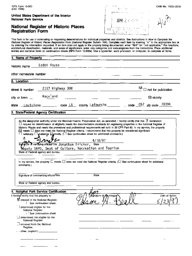 NPS Form 10900 (Oct. 1990) |United States Department of the Interior National Park Service OMB No. 100240018 F!APR 2; National Register of Historic Places Registration Form This form is for use in