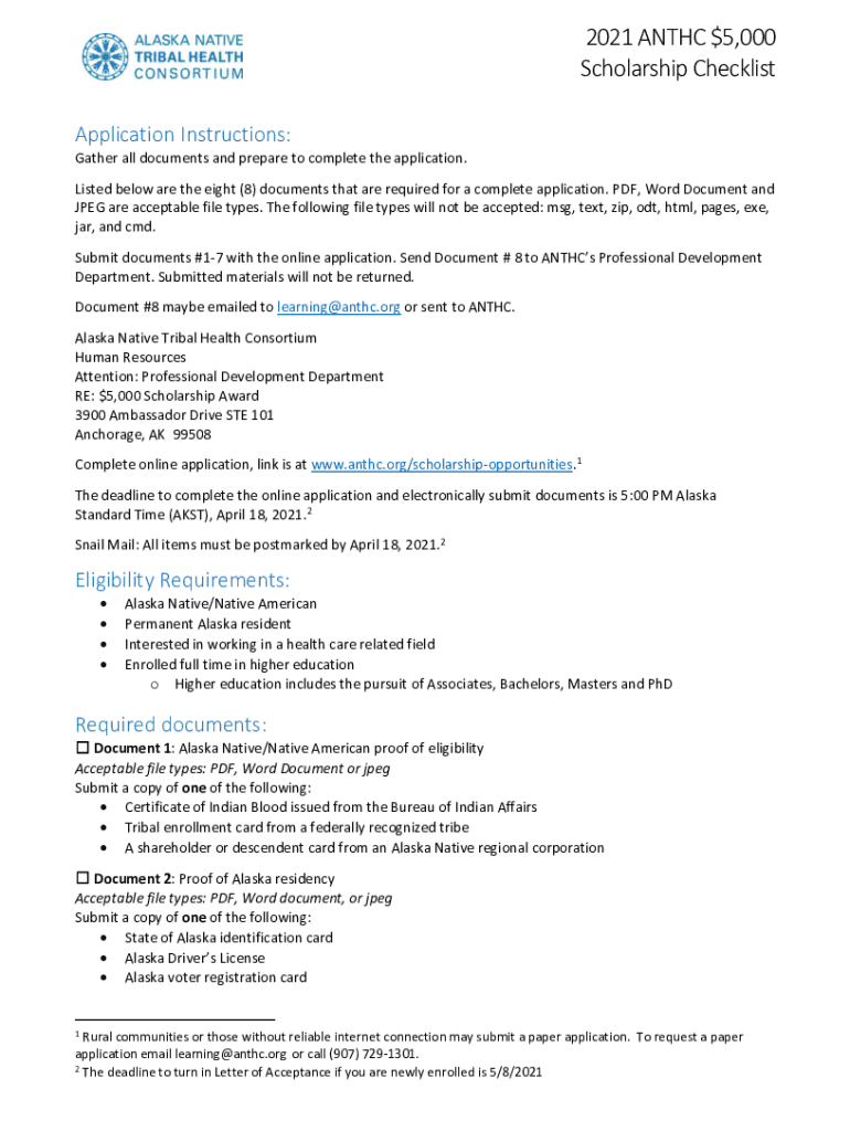 2021 ANTIC $5,000 Scholarship Checklist Application Instructions: Gather all documents and prepare to complete the application. Listed below are the eight (8) documents that are required for a complete