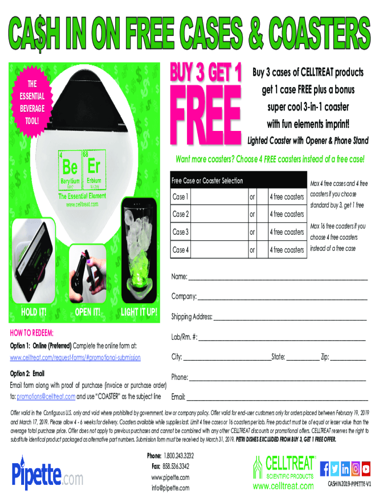 Get the Buy 3 cases of CELLTREAT products get 1 case FREE plus a ...