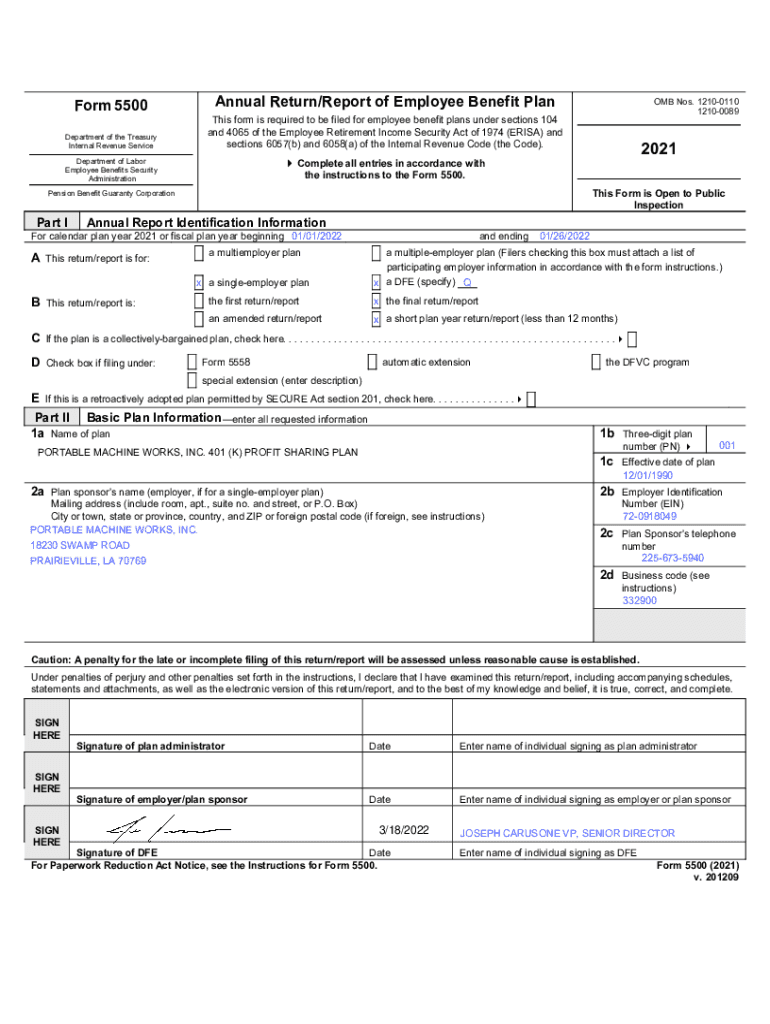 Form 5500 Department of the Treasury Internal Revenue ServiceAnnual Return/Report of Employee Benefit PlanDepartment of Labor Employee Benefits Security Administration2021Complete all entries in accordance