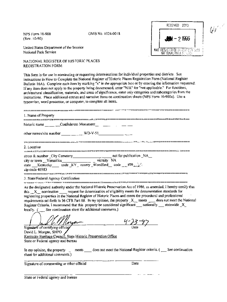 RECEIVED NFS Form 10900 (Rev. 1090)OMB No. 102400182280 !4112 1996!1United States Department of the Interior National Park Serviceman. REGISTER Oi Hi: NATIONAL PARK Via\'PC;NATIONAL REGISTER OF HISTORIC