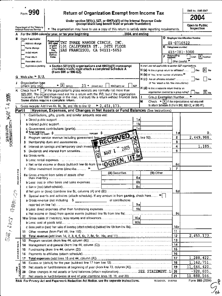 Form 990Department of we Treasury Internal Revenue Service A BGK\'a b c d2 3 4 5 6a b 7 N E 0%\” 2004Under section 501(c), 527, or 4947(ax1) of the Internal Revenue Code (except black lung benefit
