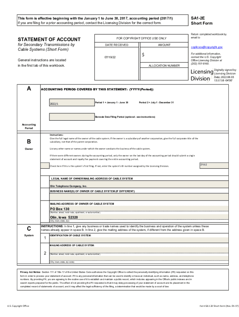 This form is effective beginning with the January 1 to June 30, 2017, accounting period (2017/1) If you are filing for a prior accounting period, contact the Licensing Division for the correct form.