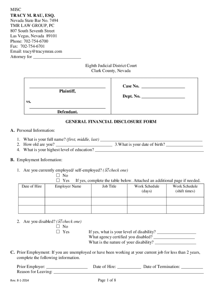 Get the free Detailed Financial Disclosure Form (8-1-14 update) - Tracy M. Rau