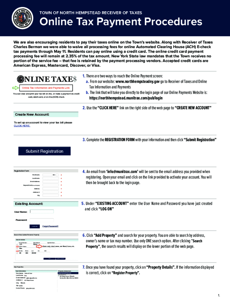 TOWN OF NORTH HEMPSTEAD RECEIVER OF TAXESOnline Tax Payment Procedures We are also encouraging residents to pay their taxes online on the Towns website. Along with Receiver of Taxes Charles Berman