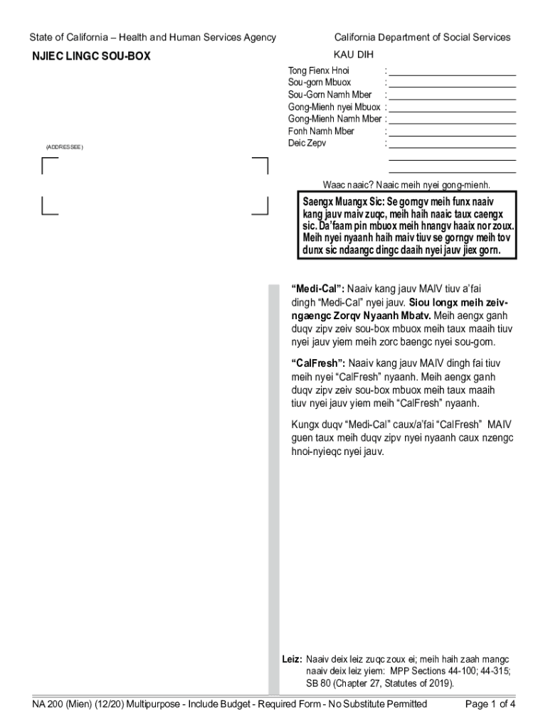 State of California Health and Human Services Agency California Department of Social ServicesNJIEC LINGO SOUBOXKAU DID(ADDRESSEE)Tong Faint Hanoi: ___ Suborn MBUX: ___ Suborn Name Amber: ___ Gonging