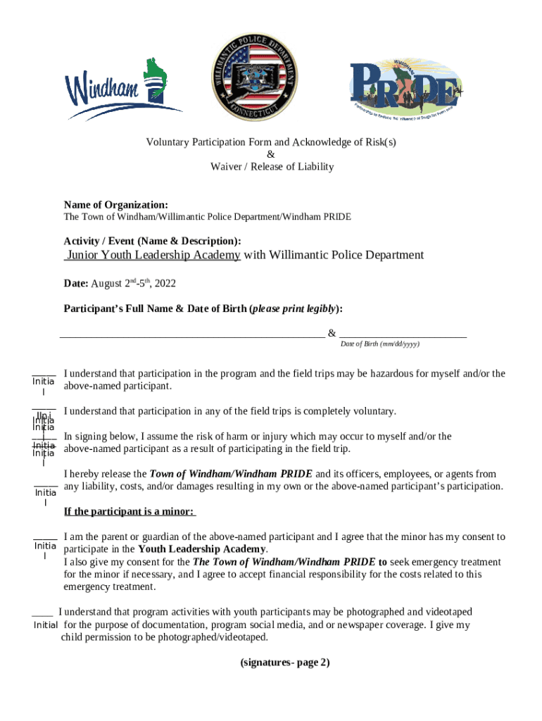 The Volunteer Liability Waiver: 5 Best Practices for your NonprofitVolunteer Liability Waiver: 5 Best Practices for your NonprofitParticipant Volunteer Waiver s - downloads.capta.orgParticipation Waiver Templates - WaiverForever is a writable document that has to be completed and signed for certain needs. In that case, it is furnished to the relevant addressee in order to provide some information of any kinds. The completion and signing is possible manually in hard copy or with an appropriate application like PDFfiller. Such tools help to submit any PDF or Word file without printing out. It also allows you to customize it for your needs and put a legal digital signature. Once done, the user ought to send the Volunteer Liability Waiver: 5 Best Practices for your NonprofitVolunteer Liability Waiver: 5 Best Practices for your NonprofitParticipant Volunteer Waiver s - downloads.capta.orgParticipation Waiver Templates - WaiverForever to the recipient or several ones by mail and also fax. PDFfiller provides a feature and options that make your document of MS Word extension printable. It includes various options when printing out. No matter, how you'll deliver a document - physically or by email - it will always look neat and organized. To not to create a new editable template from scratch every time, make the original document as a template. Later, you will have an editable sample.