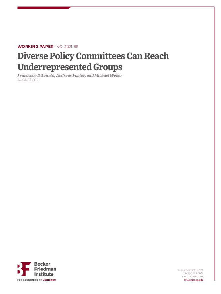 WORKING PAPER NO. 202195Diverse Policy Committees Can Reach Underrepresented Groups Francesco Daunt, Andreas Faster, and Michael Weber AUGUST 20215757 S. University Ave. Chicago, IL 60637 Main: 773.702.5599