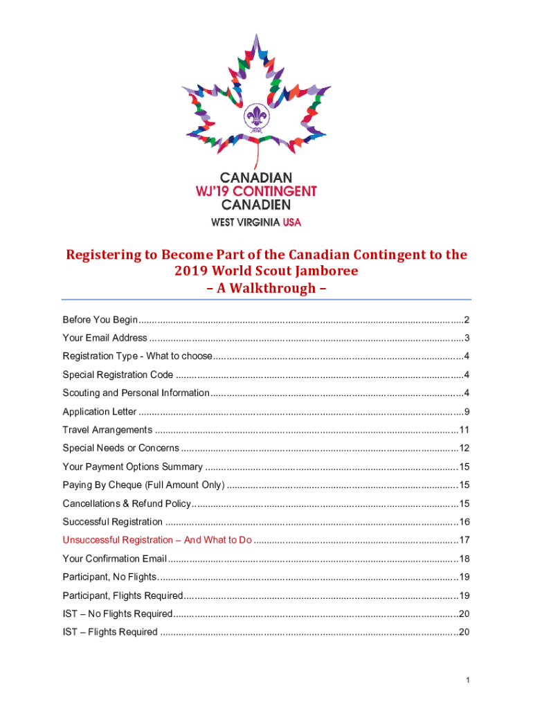 Registering to Become Part of the Canadian Contingent to the2019 World Scout Jamboree A Walkthrough Before You Begin ..........................................................................................................................