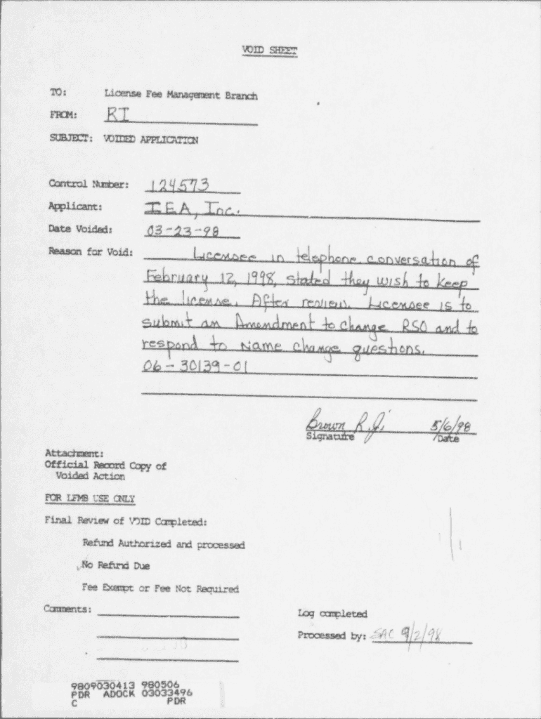 Get the free Voided matls licensing action for license 06-30139-01 for IEA,Inc.Control