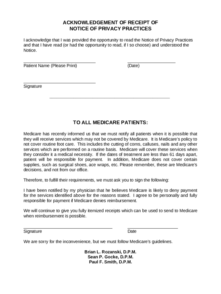 What is Acknowledgement of Receipt of Notice of Privacy Practices Sample ... Form?