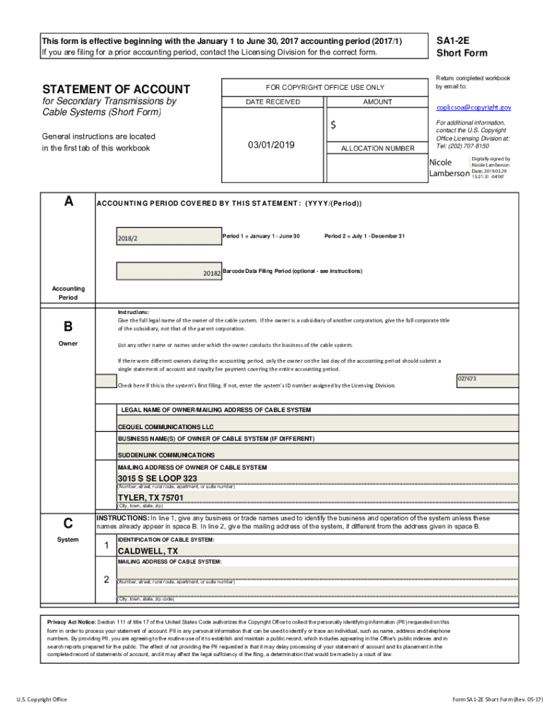 This form is effective beginning with the January 1 to June 30, 2017, accounting period (2017/1) If you are filing for a prior accounting period, contact the Licensing Division for the correct form.