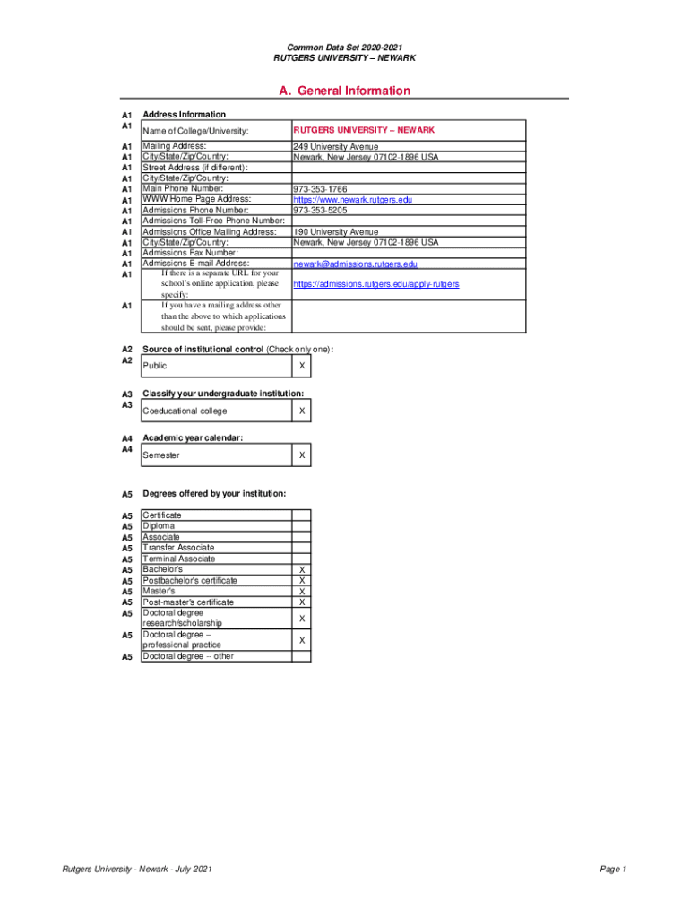 Common Data Set 20202021 RUTGERS UNIVERSITY NEWARK. General Information A1 A1 A1 A1 A1 A1 A1 A1 A1 A1 A1 A1 A1 A1 A1A1A2 A2A3 A3A4 A4Address Information Name of College/University:RUTGERS UNIVERSITY