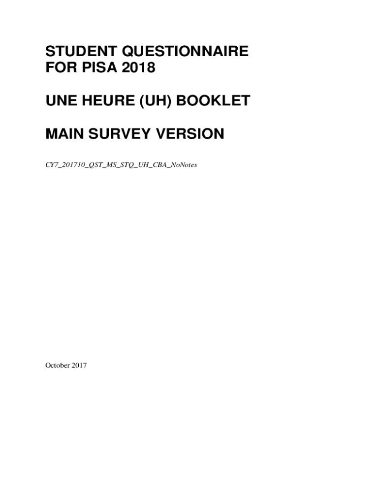 STUDENT QUESTIONNAIRE FOR PISA 2018 ONE HERE (UH) BOOKLET MAIN SURVEY VERSION CY7_201710_QST_MS_STQ_UH_CBA_NoNotesOctober 2017CY7_201710_QST_MS_STQ_UH_CBA_Notes In this questionnaire you will find