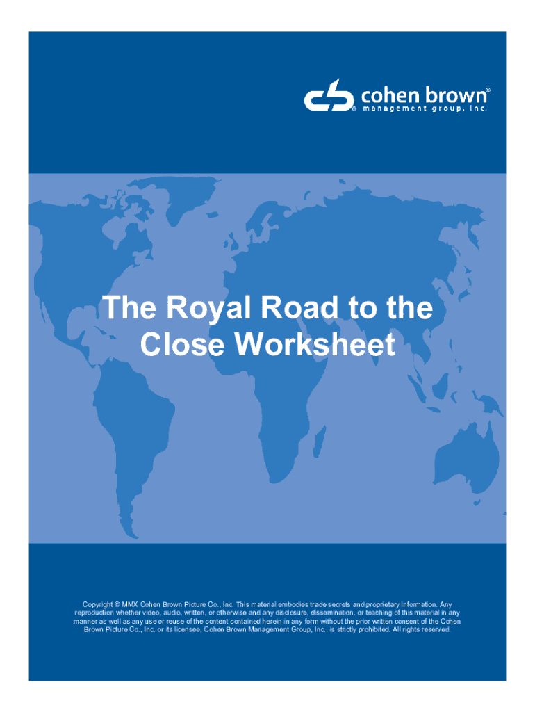 The Royal Road to the Close WorksheetCopyright MMX Cohen Brown Picture Co., Inc. This material embodies trade secrets and proprietary information. Any reproduction whether video, audio, written, or