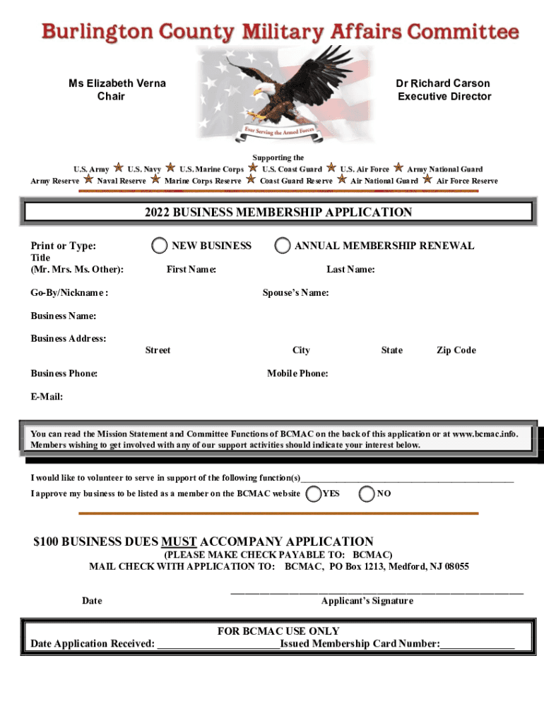 Ms Elizabeth Verna Chair Dr Richard Carson Executive Director. S. Army U.S. Navy U.S. Marine Corps Army Reserve Naval Reserve Marine Corps ReserveSupporting the U.S. Coast Guard U.S. Air Force Army
