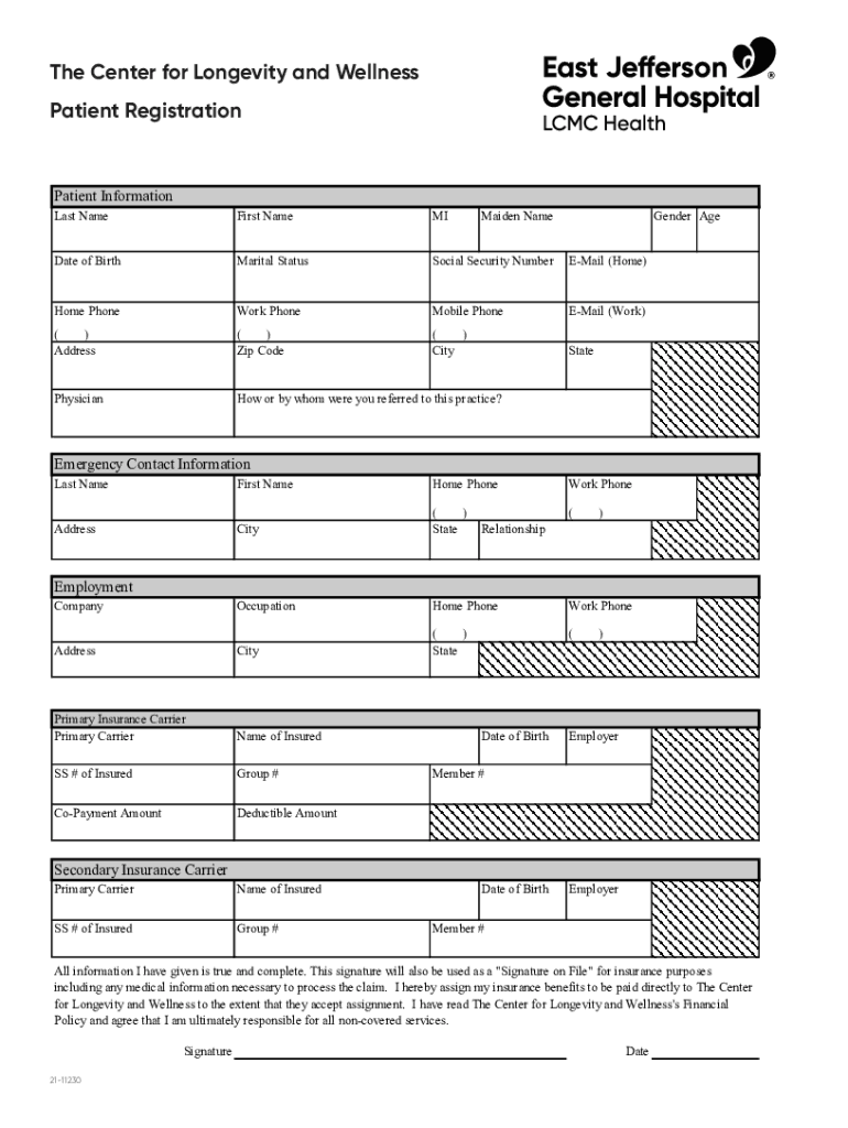 The Center for Longevity and Wellness Patient Registration Patient Information Last NameFirst NameMIMaiden Nameserver Age Date of BirthMarital StatusSocial Security NumberEMail (Home)Home Homework