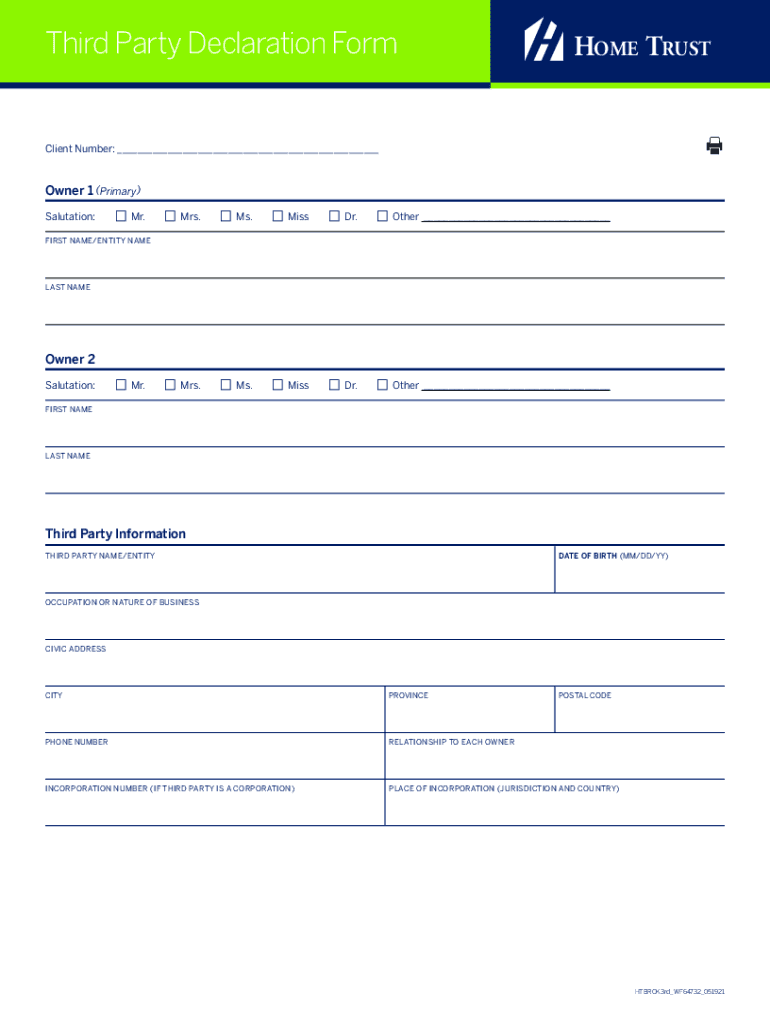 Third Party Declaration Formulaic Number: ___HOME Trustier 1 (Primary)Salutation:c Mr.c Mrs.c Ms.c Miss Dr.c Other ___c Mrs.c Ms.c Miss Dr.c Other ___FIRST NAME/ENTITY NAMELESS Homeowner 2 Salutation:c