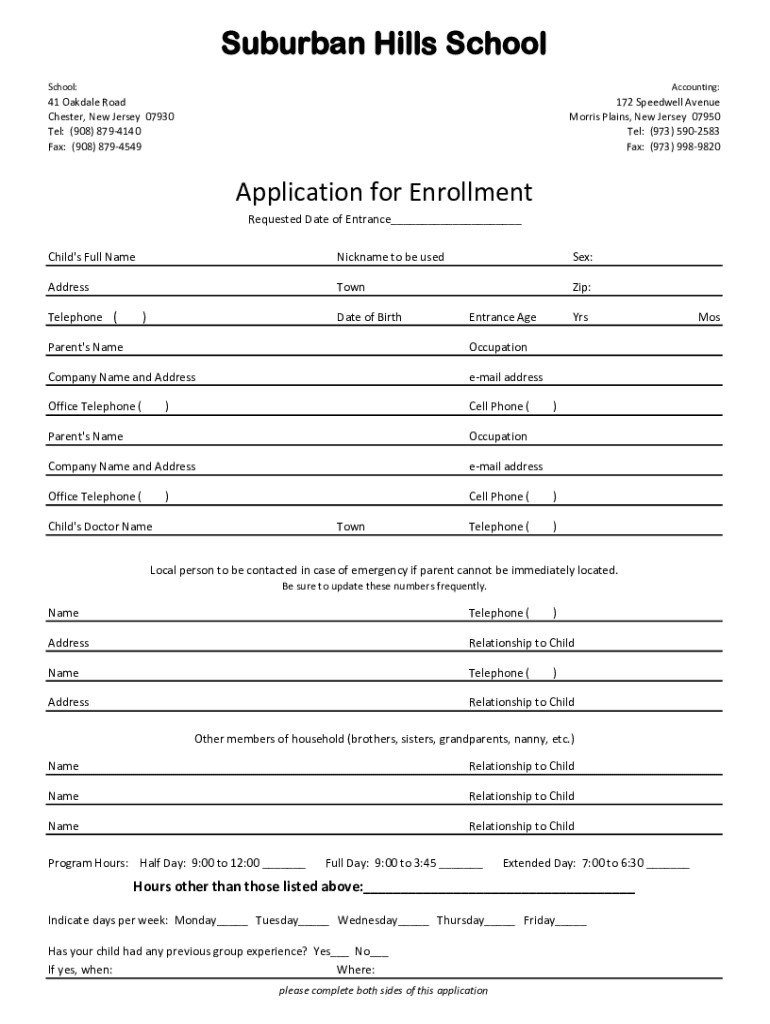 Suburban Hills School:Accounting:41 Oakdale Road Chester, New Jersey 07930 Tel: (908) 8794140 Fax: (908) 8794549172 Speedwell Avenue Morris Plains, New Jersey 07950 Tel: (973) 5902583 Fax: (973) 9989820Application