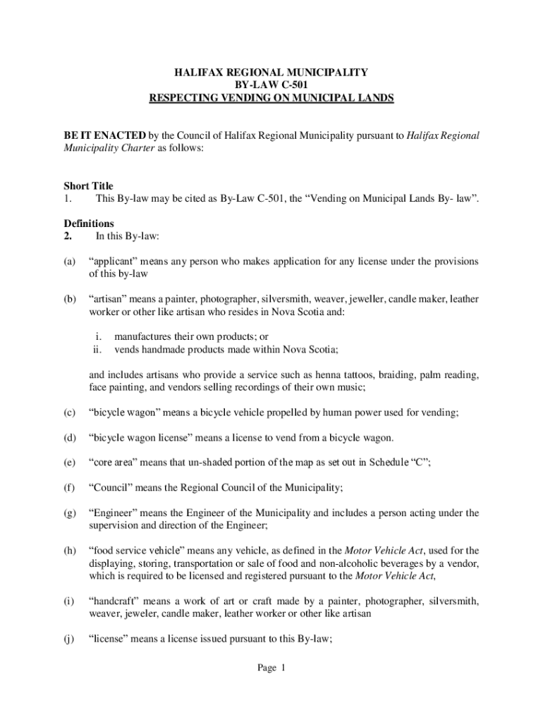 Get the free By-Law C-501, Respecting Vending on Municipal LandsHalifax.ca