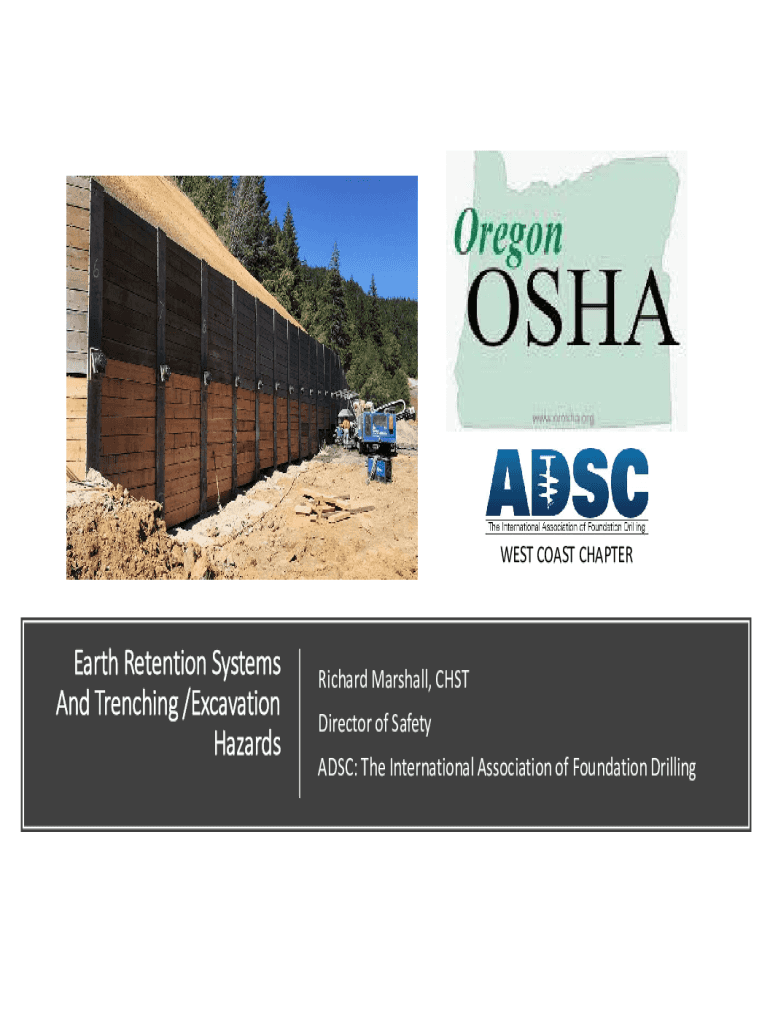 WEST COAST CHAPTEREarth Retention Systems And Trenching /Excavation Hazards Richard Marshall, CAST Director of Safety ADS: The International Association of Foundation Drilling following hazards are