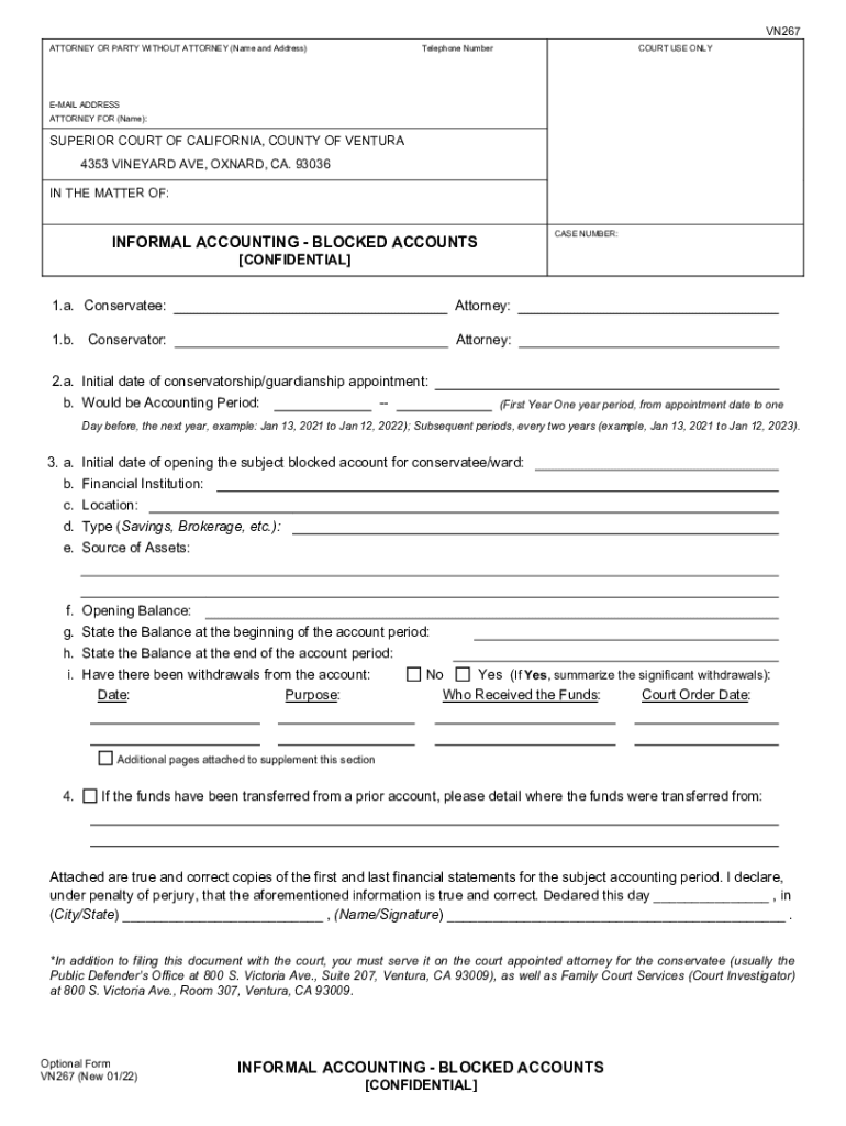 VN267 ATTORNEY OR PARTY WITHOUT ATTORNEY (Name and Address)Telephone NumberCOURT USE ONLYEMAIL ADDRESS ATTORNEY FOR (Name):SUPERIOR COURT OF CALIFORNIA, COUNTY OF VENTURA 4353 VINEYARD AVE, OXNARD,