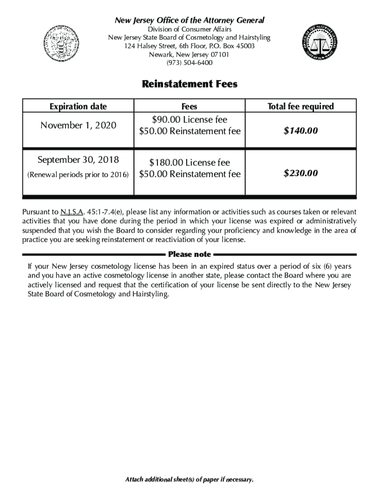 Get the free New Jersey State Board of Cosmetology and HairstylingConsumer Protection - New Jerse...