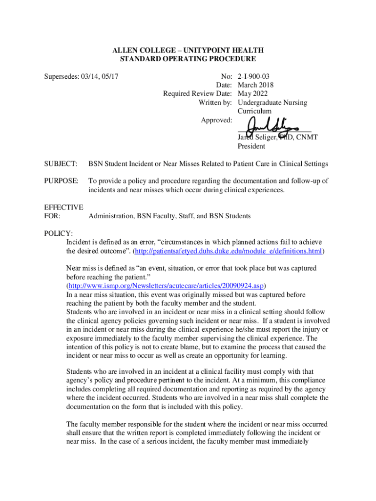 Get the free BSN Student Incident or Near Misses Related to Patient Care ...