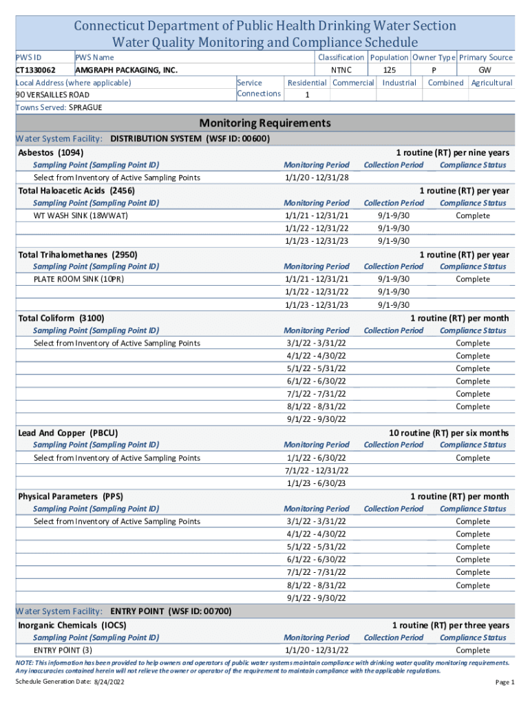 Connecticut Department of Public Health Drinking Water Section Water Quality Monitoring and Compliance Schedule PCs ID PCs Name CT1330062 GRAPH PACKAGING, INC. Local Address (where applicable) 90
