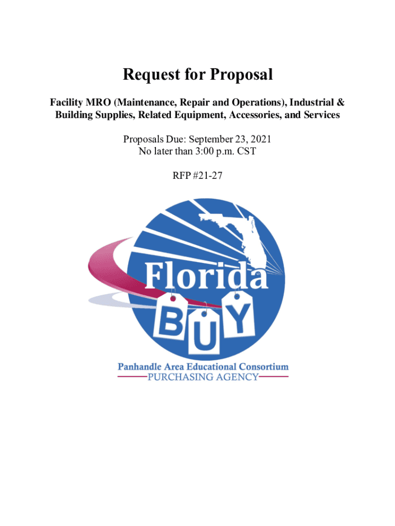 Request for Proposal Facility MRO (Maintenance, Repair and Operations), Industrial & Building Supplies, Related Equipment, Accessories, and Services Proposals Due: September 23, 2021, No later than