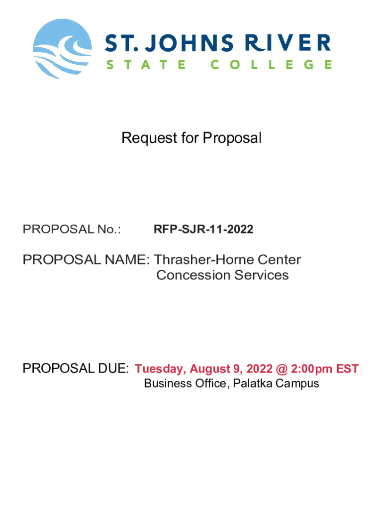 Request for ProposalPROPOSAL No.:RFPSJR112022PROPOSAL NAME: Thrasher Horne Center