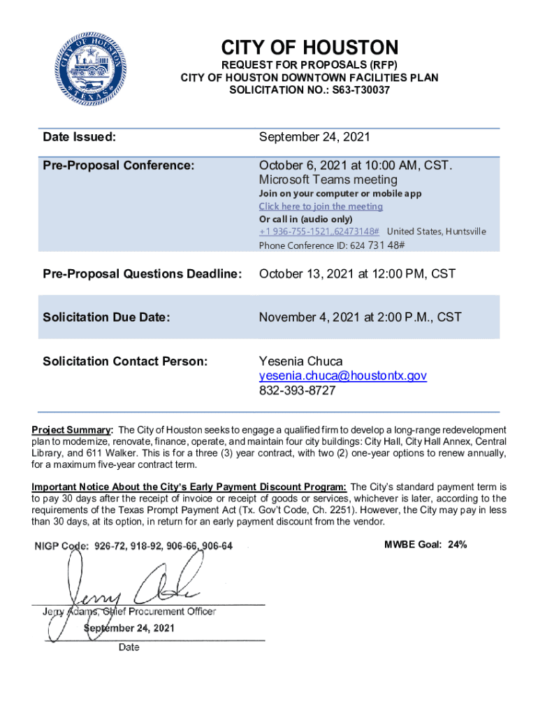 CITY OF HOUSTONREQUEST FOR PROPOSALS (RFP)