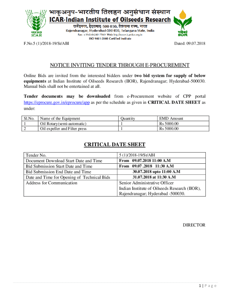 Get the free notice inviting tender through e-procurement