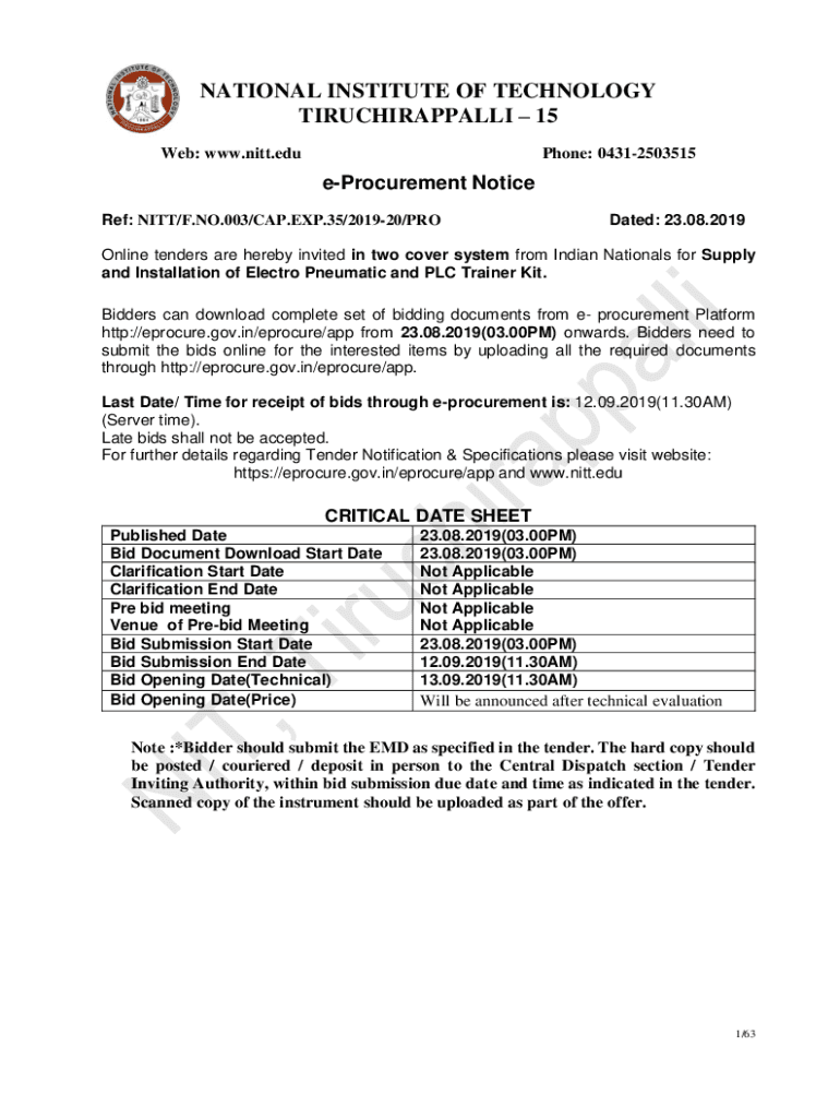 Get the free NATIONAL INSTITUTE OF TECHNOLOGY TIRUCHIRAPPALLI