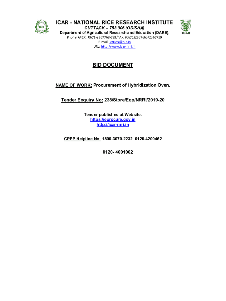Get the free NATIONAL RICE RESEARCH INSTITUTE BID DOCUMENT