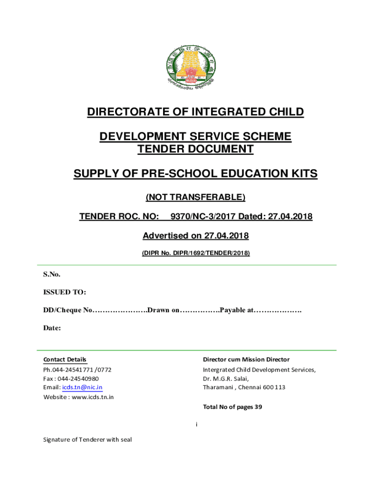 Nationaltenderscomagencydirectorate-Ofdirectorate Of Integrated Child is not the form you're looking for?Search for another form here.