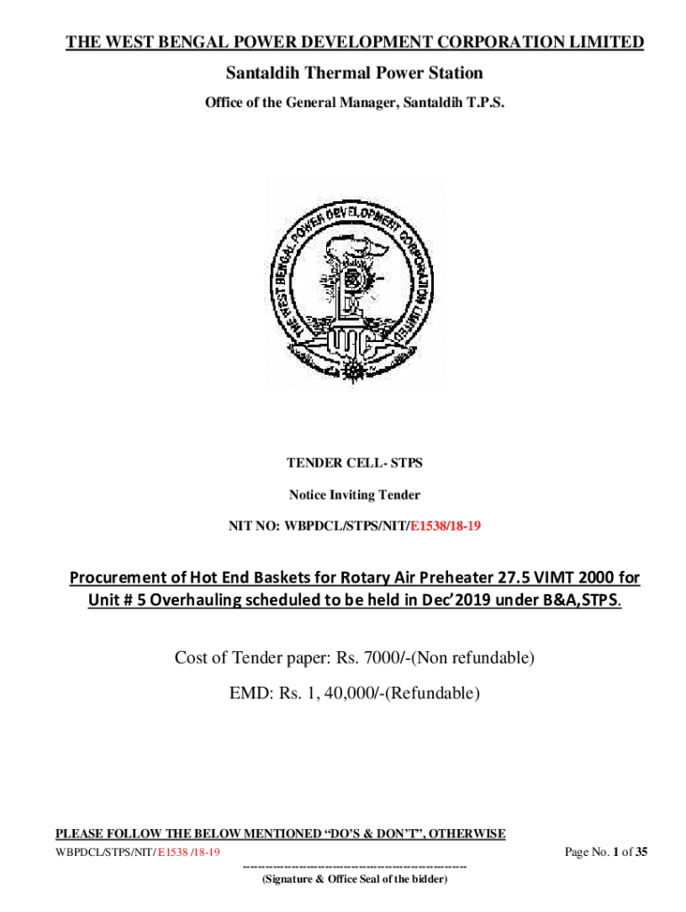 Get the free Santaldih Thermal Power Station Procurement of Hot End ...