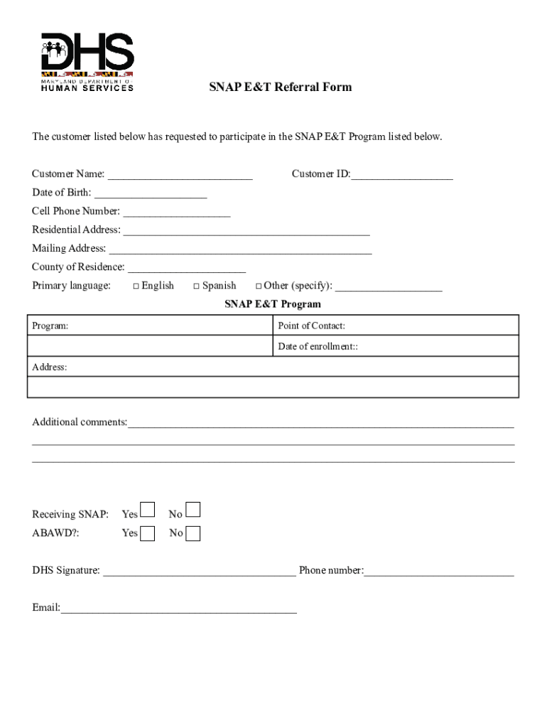 SNAP E&T Referral Forth customer listed below has requested to participate in the SNAP E&T Program listed below.
