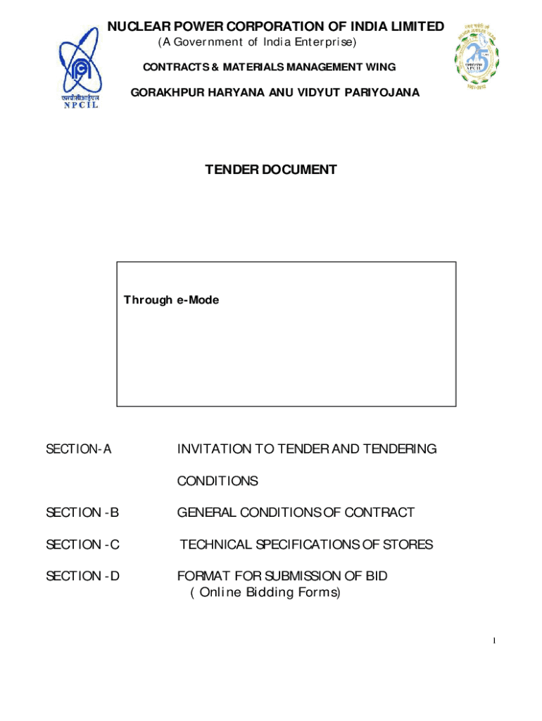 NUCLEAR POWER CORPORATION OF INDIA LIMITED (A Government of India Enterprise) CONTRACTS & MATERIALS MANAGEMENT WINGGORAKHPUR HARYANA AND VILYUI PARIYOJANATENDER DOCUMENTThrough eModeSECTIONAINVITATION