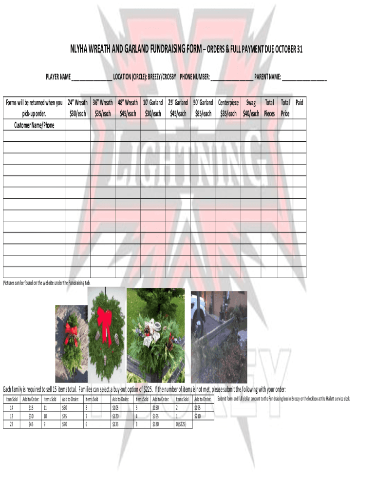 Get the free NLYHA WREATH AND GARLAND FUNDRAISING FORM ORDERS & FULL PAYMENT DUE ...