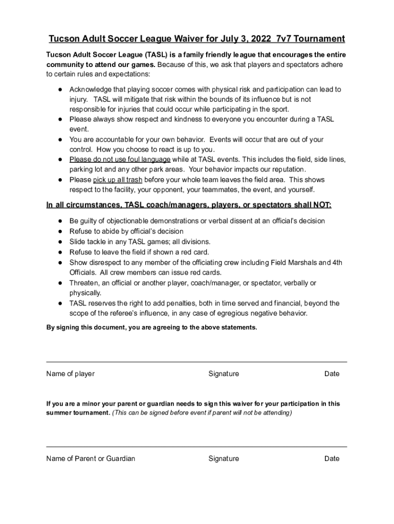 Tucson Adult Soccer League Waiver for July 3, 2022 7v7 Tournament Tucson Adult Soccer League (TAIL) is a family friendly league that encourages the entire community to attend our games. Because of