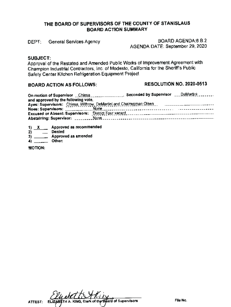 THE BOARD OF SUPERVISORS OF THE COUNTY OF STANISLAUS BOARD ACTION SUMMARYDEPT:General Services AgencyBOARD AGENDA:6. B.2 AGENDA DATE: September 29, 2020SUBJECT: Approval of the Restated and Amended