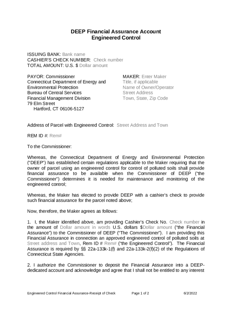 What is Engineered Control Financial Assurance Letter of Credit Template Form?