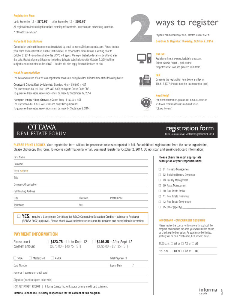 Get the free 14-033 (Ottawa REF Reg Form).indd - Real Estate Forums