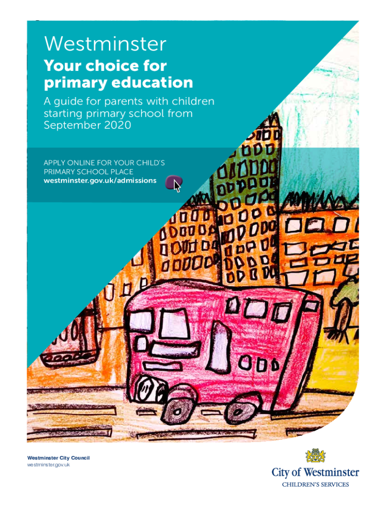Westminster Your choice for primary education A guide for parents with children starting primary school from September 2020APPLY ONLINE FOR YOUR CHILD PRIMARY SCHOOL PLACE westminster.gov.uk/admissionsWestminster