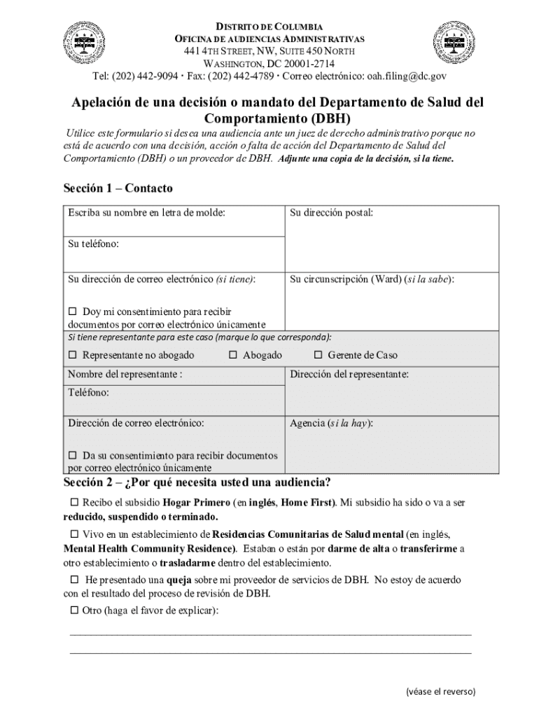 DISTRICT DE COLUMBIA OFFICIAL DE AUDIENCES ADMINISTRATIVE 441 4TH STREET, NW, SUITE 450 NORTH WASHINGTON, DC 200012714 Tel: (202) 4429094 Fax: (202) 4424789 Core electric: oah.filing@dc.govApelacin